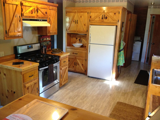 Set among pine and oak woodland, our authentic log home has five bedrooms, two baths, full kitchen with ample counter space, large living room with wood-burning stove, and a covered veranda for outdoor living. Use the large BBQ to cook up your favorite dishes and enjoy them at the outdoor tables.